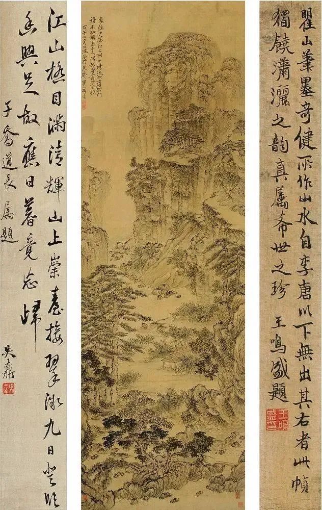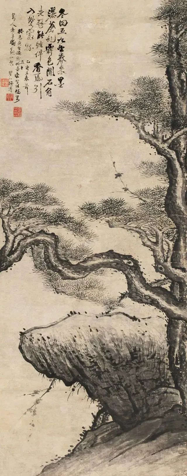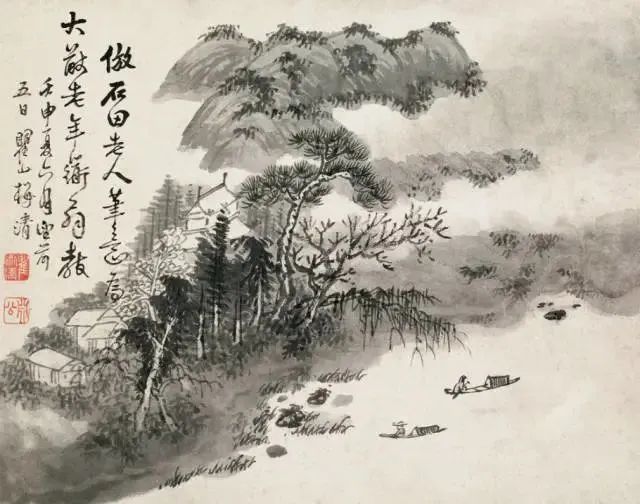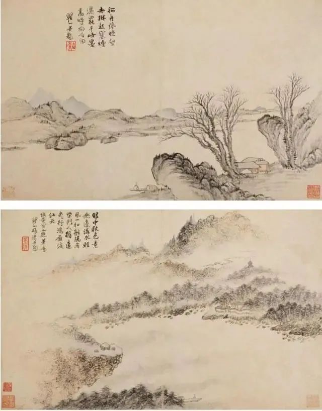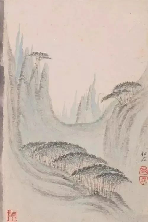 梅清之山水画,笔法多变,或粗犷豪放,或细腻婉约。其运笔如龙蛇飞舞,遒劲有力,又似流水潺潺,柔和绵长。墨色则浓淡相宜,干湿得当,或浓墨重彩,或淡墨轻描,皆能恰到好处,表现出山川之不同层次和质感。且其用色独特,善以青绿为主调,辅以赭石、花青等色,使得画面色彩丰富而和谐,更显山川之秀美。